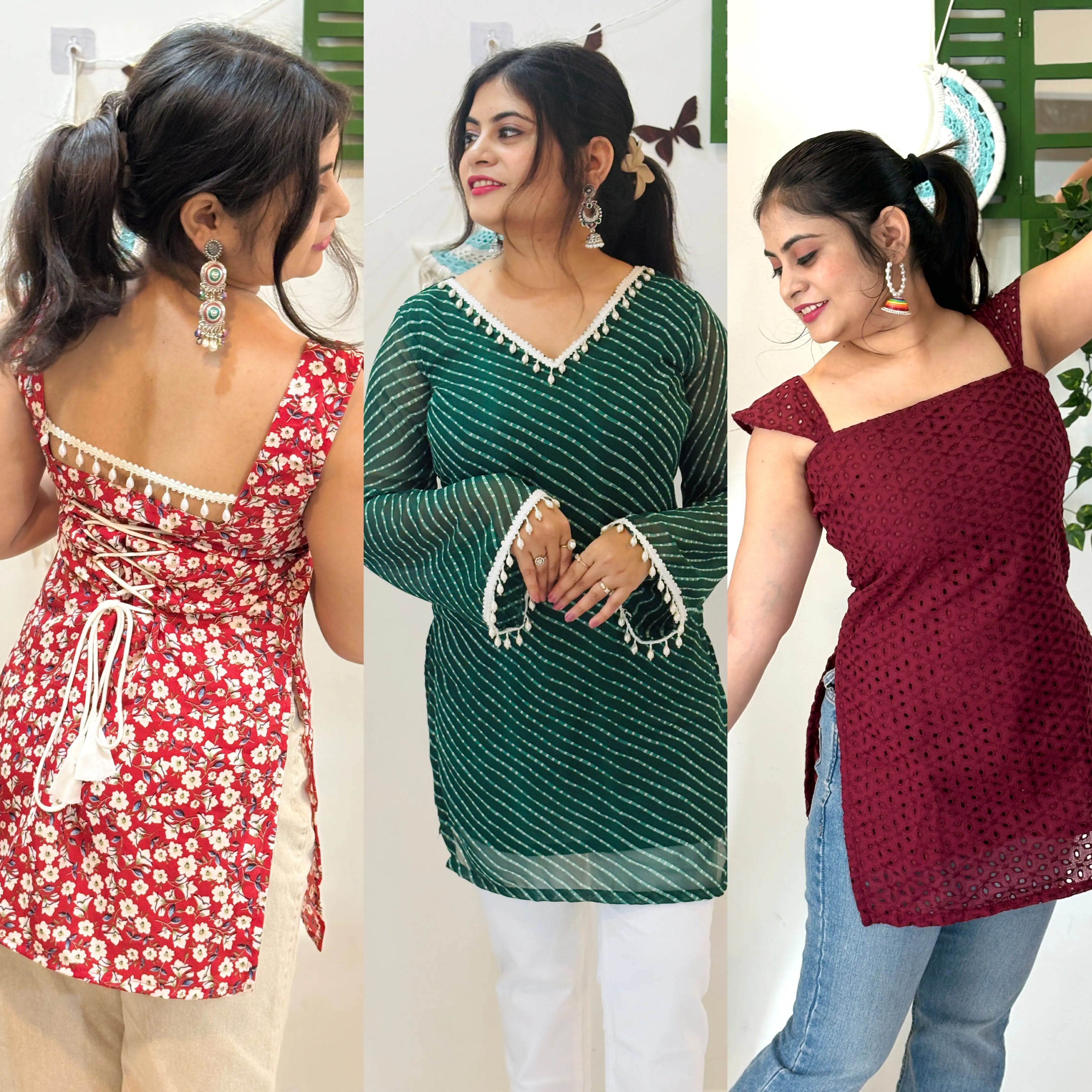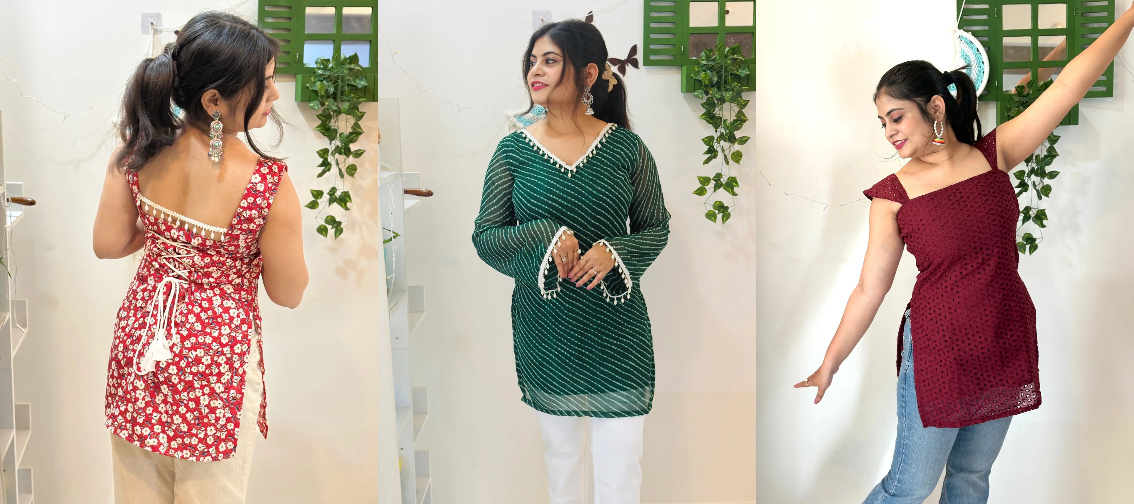 Classic Red Polka Kurti with White Dots & Lace Shoulder Detailing