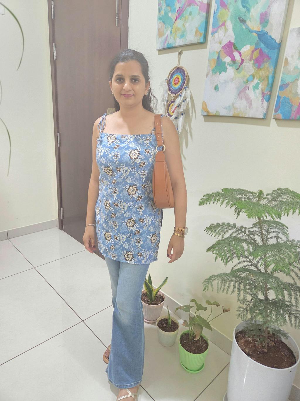 This beautifully crafted cotton kurti blends comfort with contemporary charm. Designed with delicate tie-up shoulder straps and an elegant corset back, it adds a stylish edge while ensuring a flattering fit. The soft floral print paired with subtle Swarovski work makes it perfect for casual outings as well as festive daytime looks.